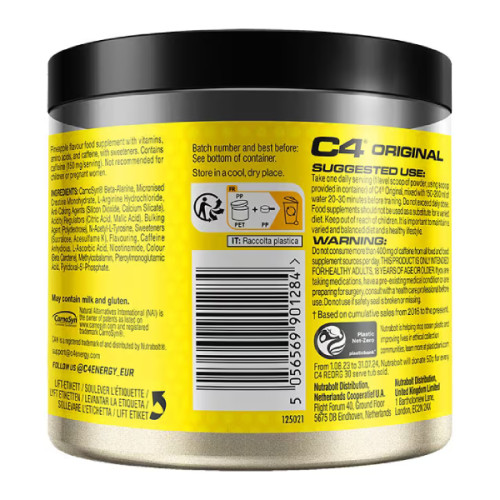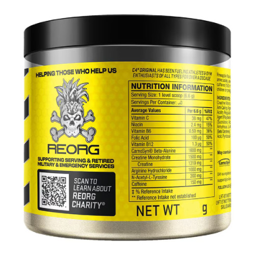 Get ready for a proper workout with C4 Original – a classic no-nonsense pre-workout powder. C4 Original is packed with nine top ingredients including caffeine to enhance focus and alertness, and creatine to increase high intensity performance. Vitamin C, B6 and B12 reduce fatigue and support energy -yielding metabolism. To top it off C4 Original also includes arginine AKG, N-acetyl L-tyrosine and the premium beta-alanine form CarnoSyn®. Available in a range of great-tasting flavours.
