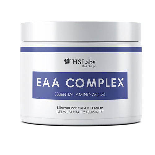 EAA COMPLEX is a comprehensive essential amino acid (EAA) supplement made for active individuals, ranging from elite athletes, bodybuilders, distance runners, weekend warriors, and even casual gym-goers. EAAs are the “building blocks” of muscle protein and recent studies have shown that supplementing with them can enhance muscle growth just as much, if not more than, protein powder due to the rapid absorption of EAAs.1