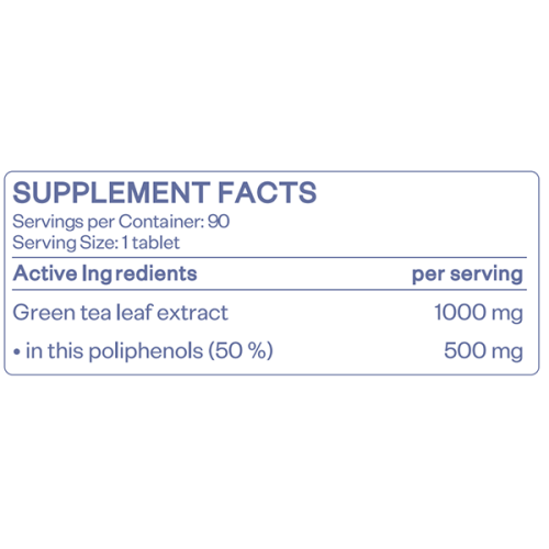 The amount of green tea leaf extract to use will depend on the concentration of polyphenols provided by the extract you use. HS Labs Green Tea Tablets contains 1000 mg of green tea leaf extract standardized to contain no less than 50% polyphenols per serving (i.e. each tablet provides at least 500 mg of polyphenols) to help you boost your fat loss efforts and overall wellness!